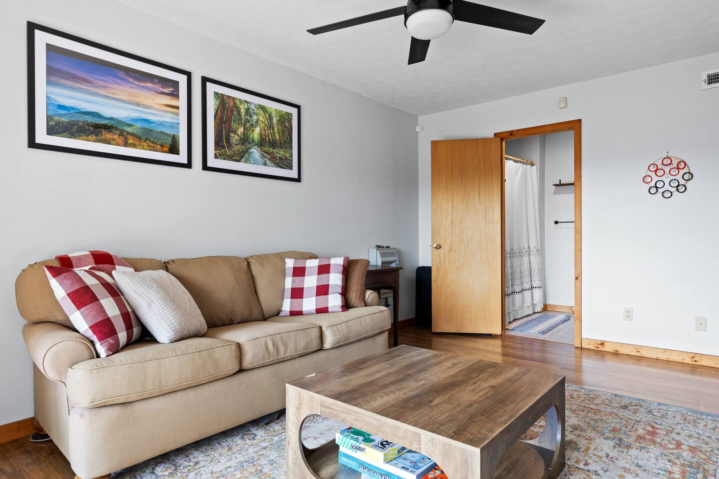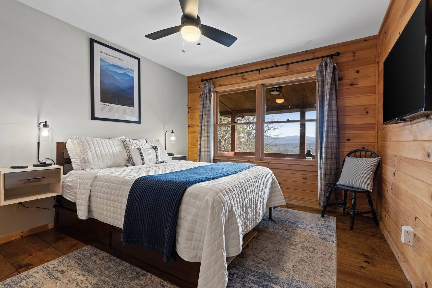 "Whether in the hot tub or sitting on the swing or comfy furniture on the deck the trees frame the mountains like a work of art." - Shannon Why Youβll Love It: β¦ Cozy, central Blue Ridge, GA vacation rental β minutes from the Blue Ridge Scenic Railway, Main Street shops, restaurants, Blue Ridge Lake, and the Aska Adventure Area. β¦ Stream or Zoom with fast, private Wi-Fi β¦ Watch beautiful sunrises over the Blue Ridge Mountains. β¦ Family-friendly β board games, ample outdoor seating, and a classic fire pit to build memories. Enjoy our βcampingβ nook on the ground floor. β Living Rooms (Main floor and Ground floor) β β¦ 2 Queen sleeper sofas β¦ 2 Roku TVs (log in to your favorite apps) β¦ Open flow to the kitchen, bedrooms, and outdoor spaces β Bedrooms (Sleeps 10) β β¦ Bedroom 1: King bed β’ Roku smart TV β’ Private balcony β¦ Bedroom 2: Queen bed, twin trundle β’ Roku smart TV β¦ Bedroom 3: Two twin beds β’ Quick access to arcade room β Fully Stocked Kitchen β β¦ Modern appliances β¦ Cookware, dishes & utensils β¦ Keurig (K-Cup Version) β¦ Ready for family breakfasts or dinners β Outdoor β β¦ Paved road access β¦ Gravel parking for 4 vehicles β¦ 3 decks/patios β¦ Hot tub β¦ Fire pit (We do not provide firewood. We do provide starter) β¦ Ample outdoor seating and furniture β¦ Charcoal Park Style Grill (We provide grilling utensils, a cleaning brush, and an ash bucket. We do not provide charcoal, lighter fluid, or any other items for the grill. The grill is not part of our cleaner's cleaning routine and should be scraped clean by guests prior to use.) β Work, Stream & Stay Connected β β¦ High-speed Wi-Fi (500 Mbps) ideal for streaming, Zoom meetings, and staying connected on the go. β¦ Dedicated workspace β Additional Amenities β β¦ Arcade room with Roku TV, Mortal Kombat, and NBA Jam arcade games β¦ Clawfoot tub β¦ Easy access to washer/dryer on main floor β¦ 2 Pack n' Plays (We do not provide the mattresses or sheets) β¦ High Chair β Perfect For β β¦ Family adventures, couplesβ getaways, and group trips focused on all Blue Ridge has to offer, including hiking, outdoor & Lake activities, the Railway, unique food, wine & brewing options, and a whole lot of southern charm. "The cabin and location could not have been better" - Keith Whether youβre hiking the Aska trails, riding the Blue Ridge Scenic Railway, exploring Lake Blue Ridge, or simply soaking in the hot tub with mountain views, our property is your spacious, family-friendly cabin and the perfect home base for groups, families, or couples in Blue Ridge, GA. Add our property to your wishlist by clicking the heart in the upper right hand corner. Send us a message to learn more about exciting activities in close proximity to our property! The supplies provided, such as toilet paper, paper towels, etc., are intended to be starter sets, and you may need to purchase additional supplies for longer stays or heavy usage. While we are on a comprehensive monthly pest control program, this is a cabin in the woods, and some insects may get into the cabin through open doors or windows. We do not connect or maintain the ice maker or water dispenser on the fridge. We're happy to provide an initial supply of ice if you'd like. Please note, we can accommodate early check-ins if the cabin is ready in time, but we cannot guarantee an early check-in. We do not allow late check-outs. All guests must vacate the cabin by 10 AM EST to allow our cleaning crew to prepare the cabin for the next guests.